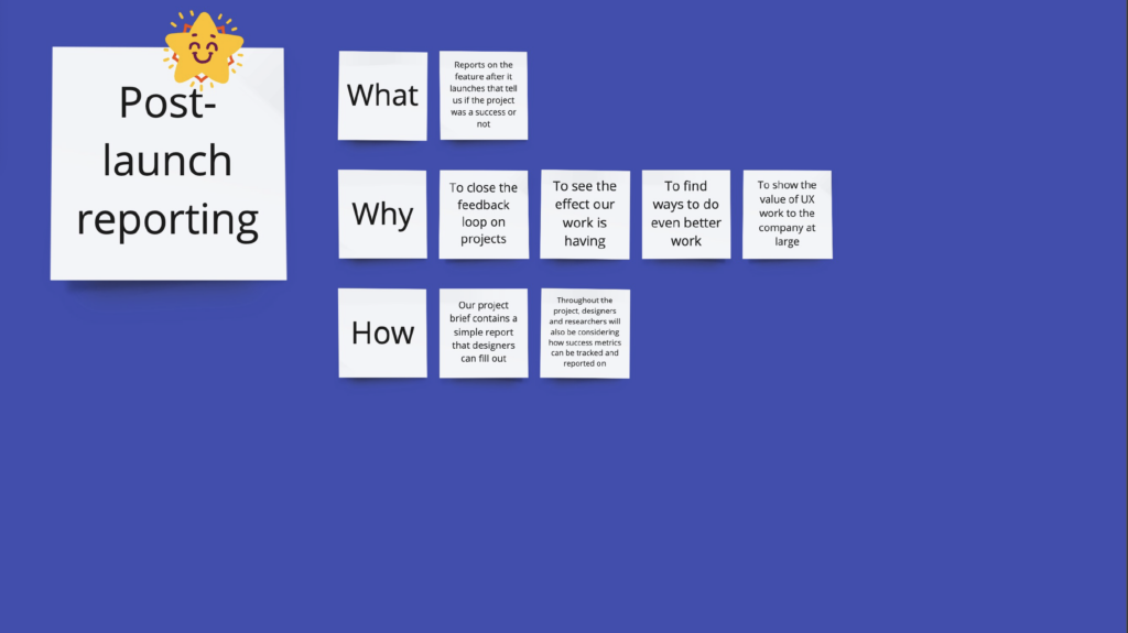 As a team, we put emphasis on three areas of our process we wanted to strengthen: Setting project metrics of success, running ‘North Star’ design sprints for feature ideas, and post-launch reporting on project success.