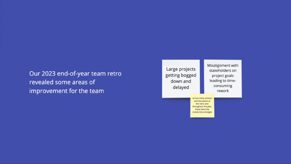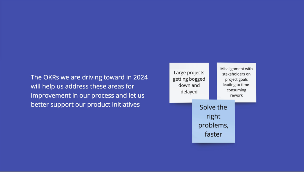 After retros and discussions with my team, two main areas of improvement emerged. We made these our 2024 Team Objectives: Solve the right problems, faster and learn, collaborate, and have fun.