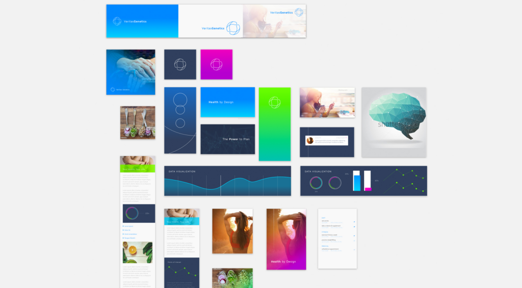 Veritas wanted to explore an energetic identity reminiscent of fitness and lifestyle companies. The visual brand need to also convey high-end product, and be flexible enough to present both serious medical information and lighter, interesting factoids.